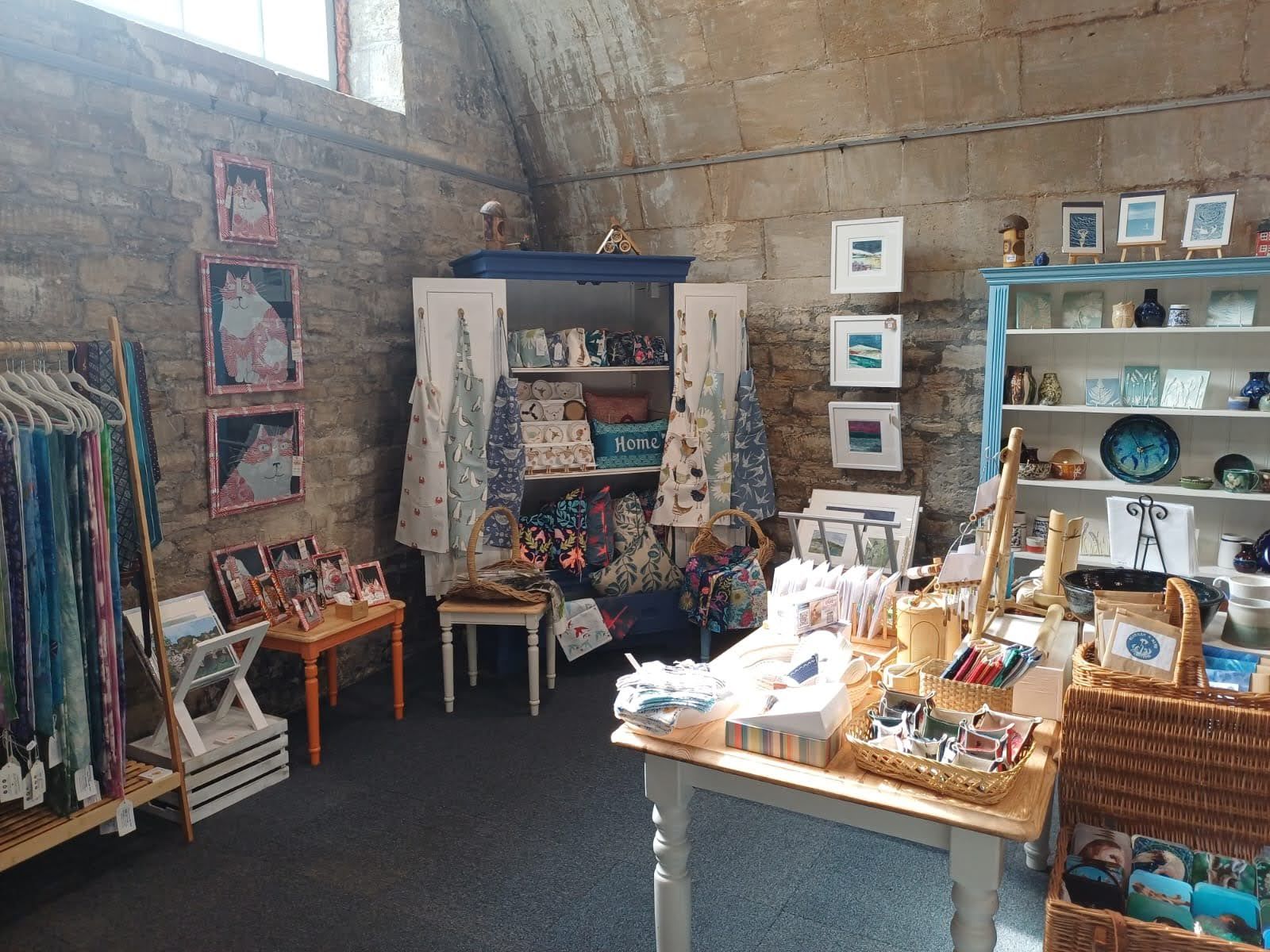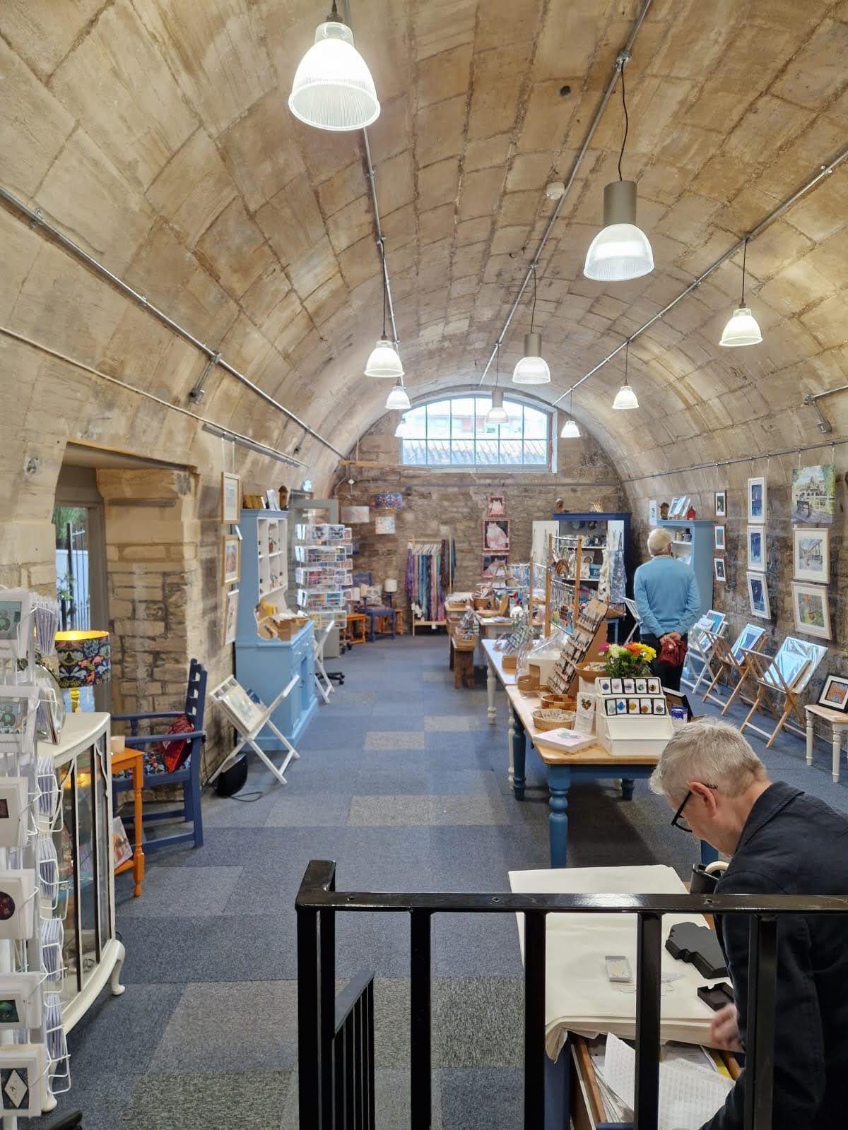 The shop is located in The Vaults in Lamb Yard, a place that was once busy and bustling with the delivery and dispatch of goods. After the wool trade declined, a major rubber factory was established in 1848 and became a key industry until the 1990s. The Vaults, built with local limestone, feature beautiful vaulted ceilings and were constructed to store raw India rubber as part of that industrial past.