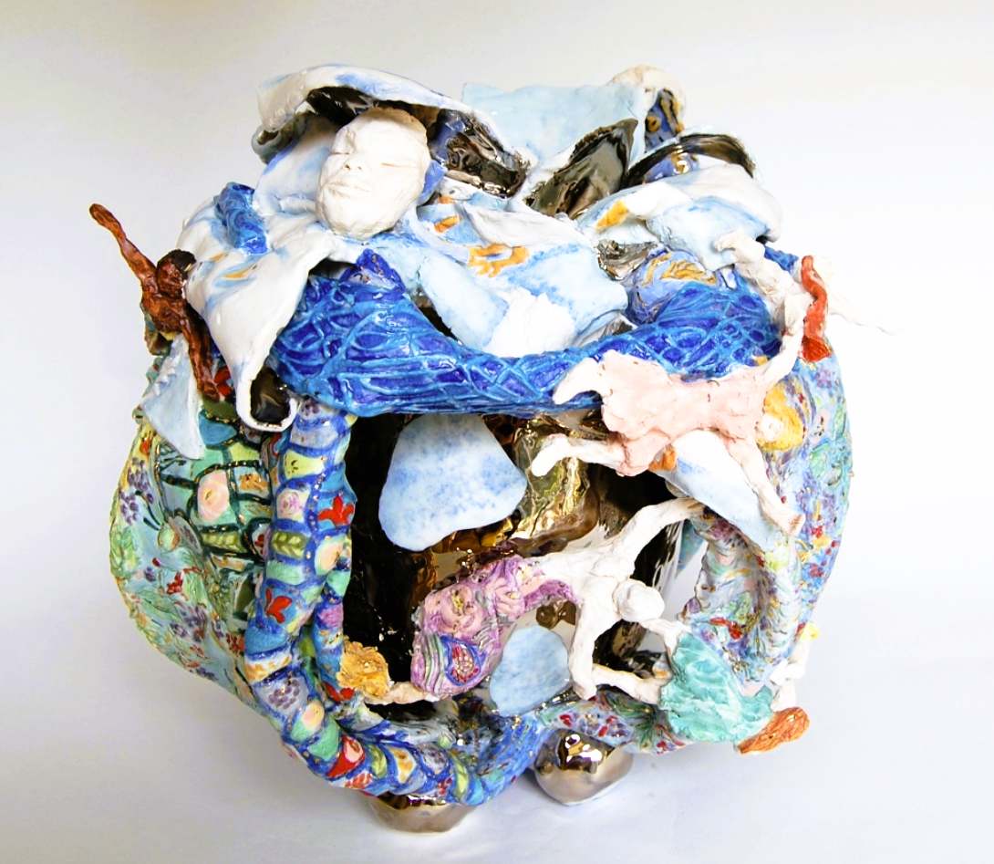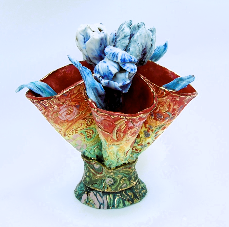 Porcelain lies at the heart of Liz’s work. She combines hand-built and sculptural forms with richly layered surface pattern, often using carved tools and freehand painting to create intricate, narrative designs. Her pieces range from expressive vessels to ambitious installations, each one entirely unique.