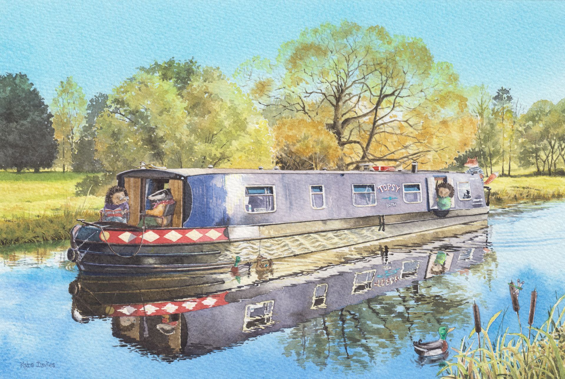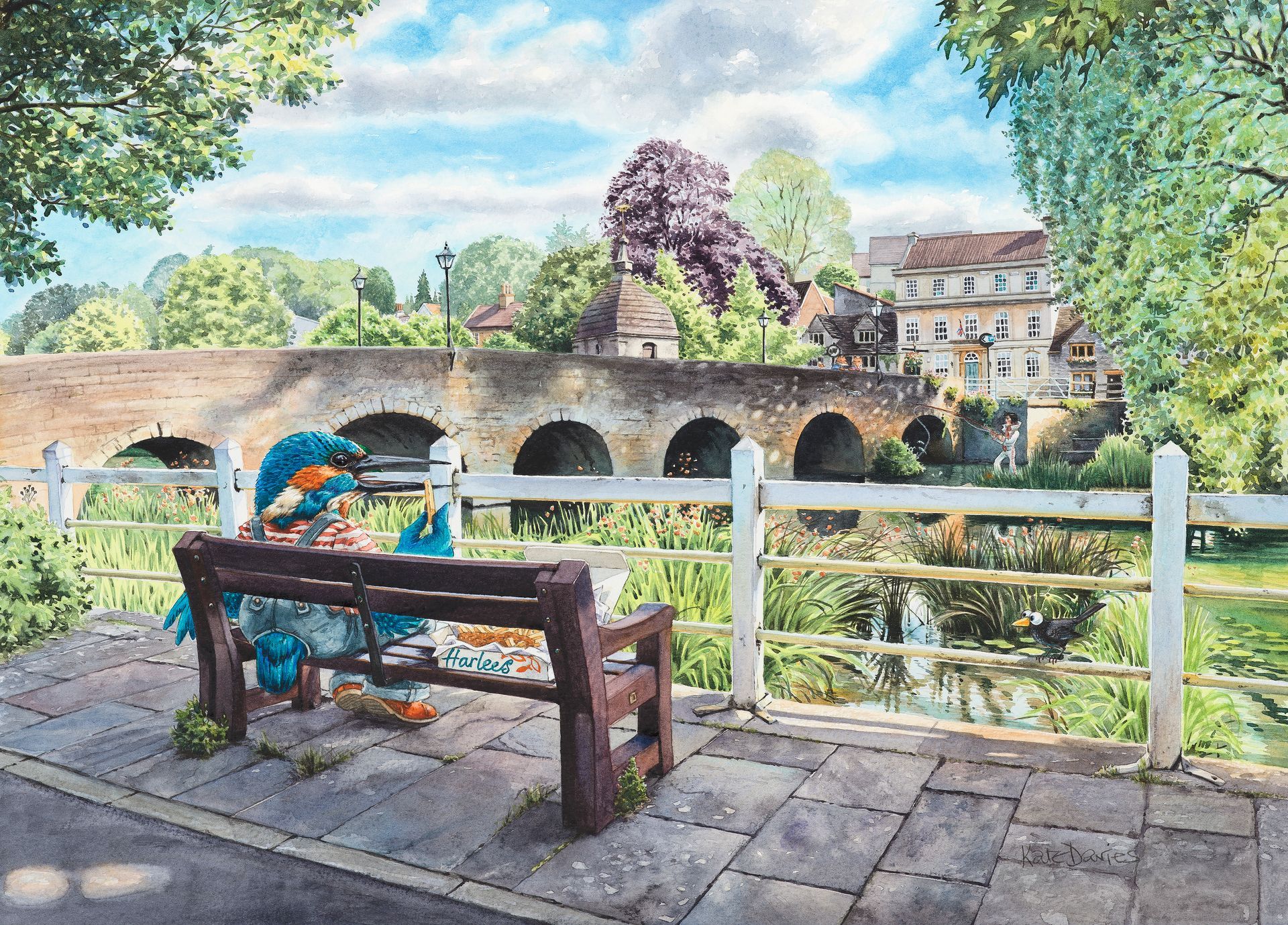 Kate Davies is a well-known and much-loved local artist whose work has developed a strong following across Bath, Bradford on Avon and the surrounding area. Working primarily in watercolour, she creates finely observed scenes of local places alongside her distinctive animal characters, often placing them into familiar settings with a gentle, knowing humour.